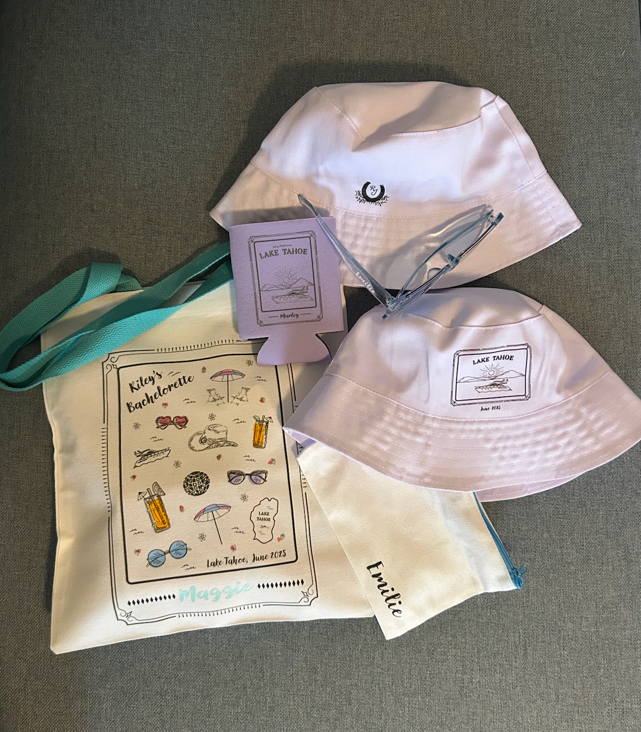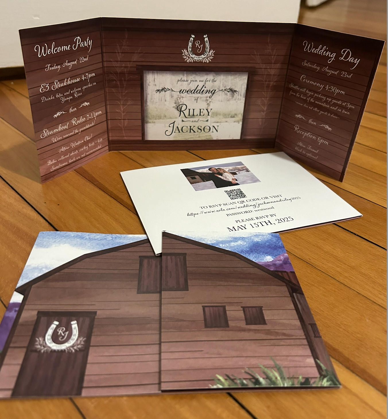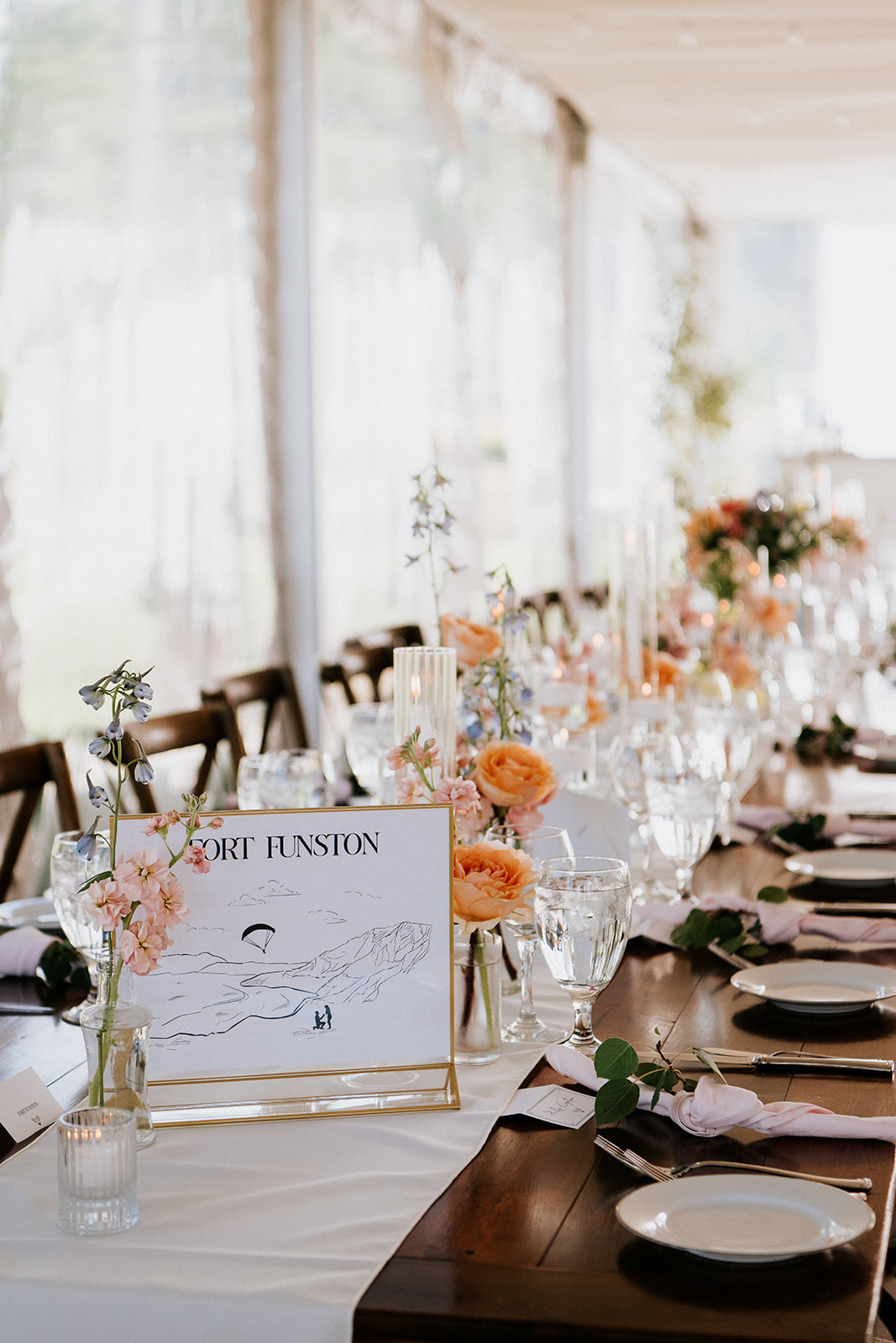 Designing from day one to even beyond the big day is such an honor, and I'm incredibly thankful to have been a part of Jackson and Riley's wedding. From the bachelorette designs, to invitations, wedding logo, table markers, and meal preferences, over to the seating chart, guestbook, and even custom bandanas- I had such a blast getting everything they needed for their wedding day.