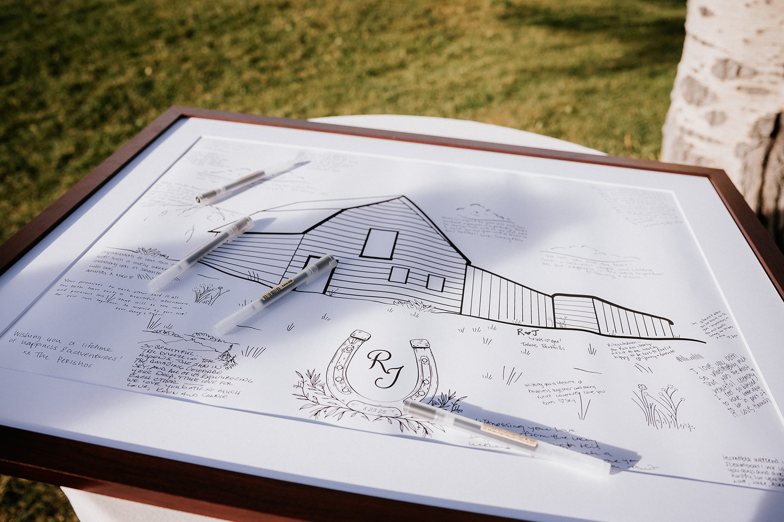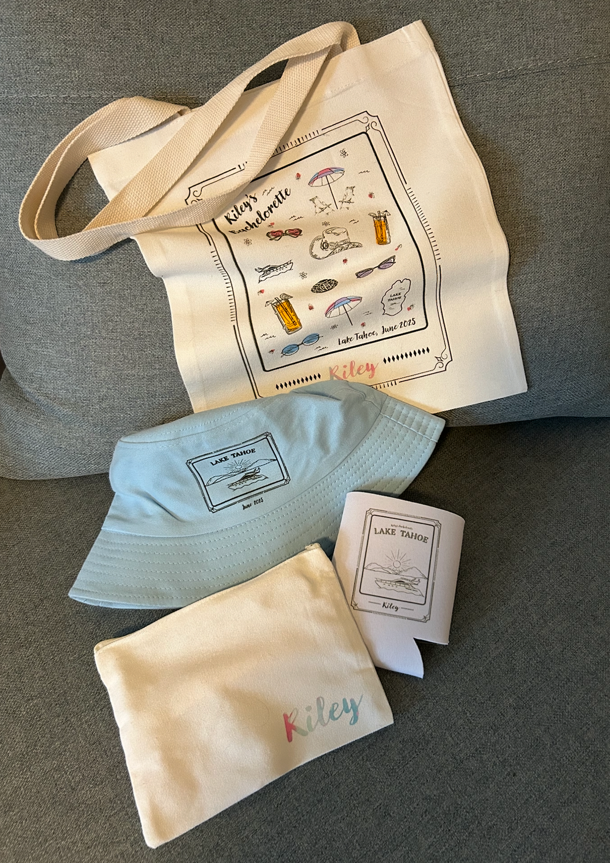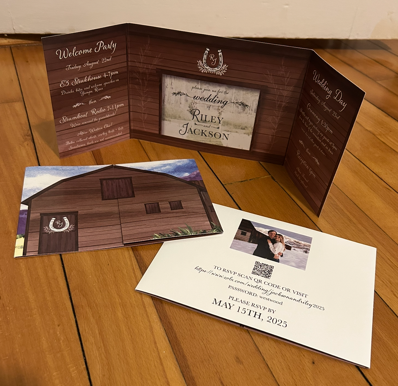 Designing from day one to even beyond the big day is such an honor, and I'm incredibly thankful to have been a part of Jackson and Riley's wedding. From the bachelorette designs, to invitations, wedding logo, table markers, and meal preferences, over to the seating chart, guestbook, and even custom bandanas- I had such a blast getting everything they needed for their wedding day.