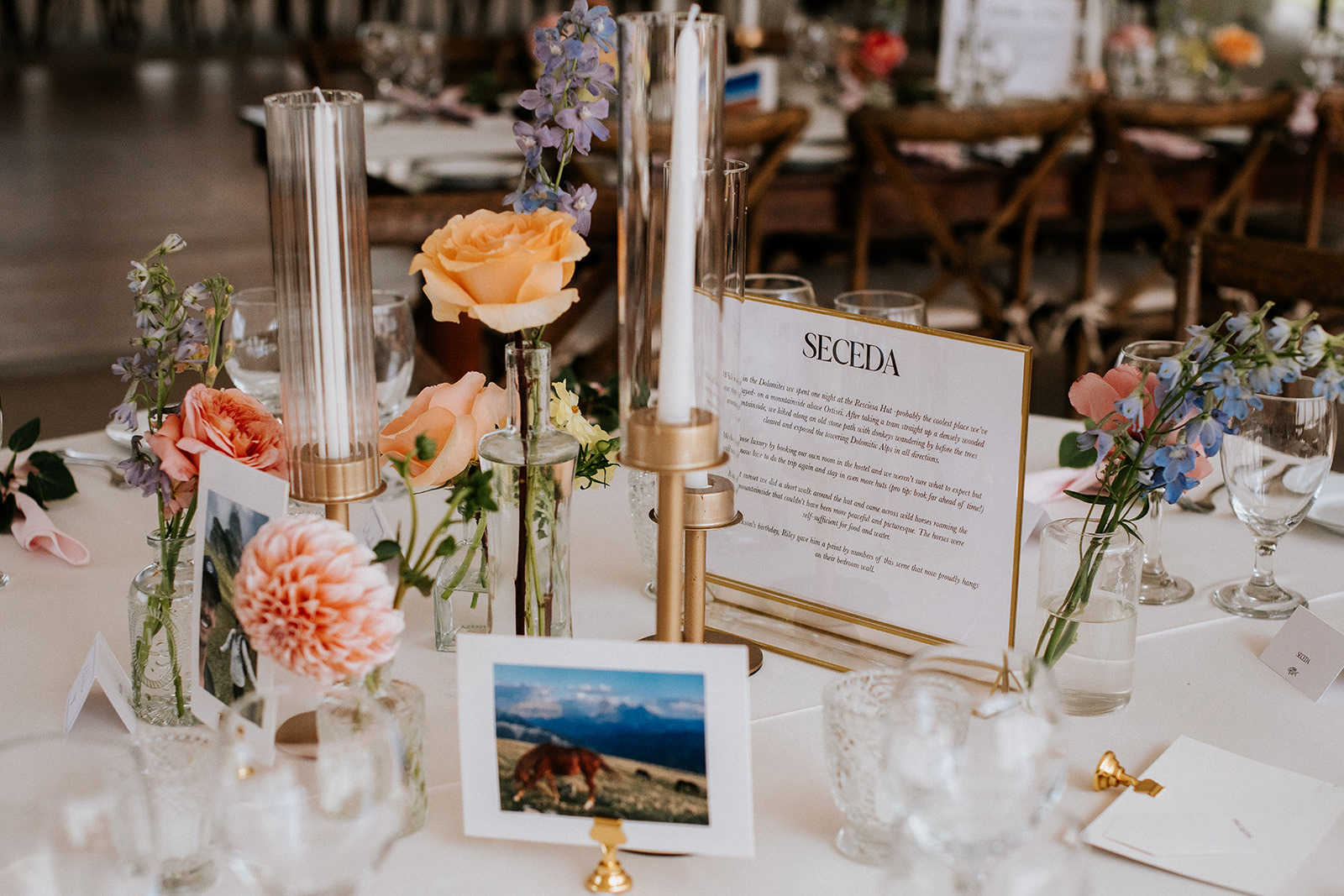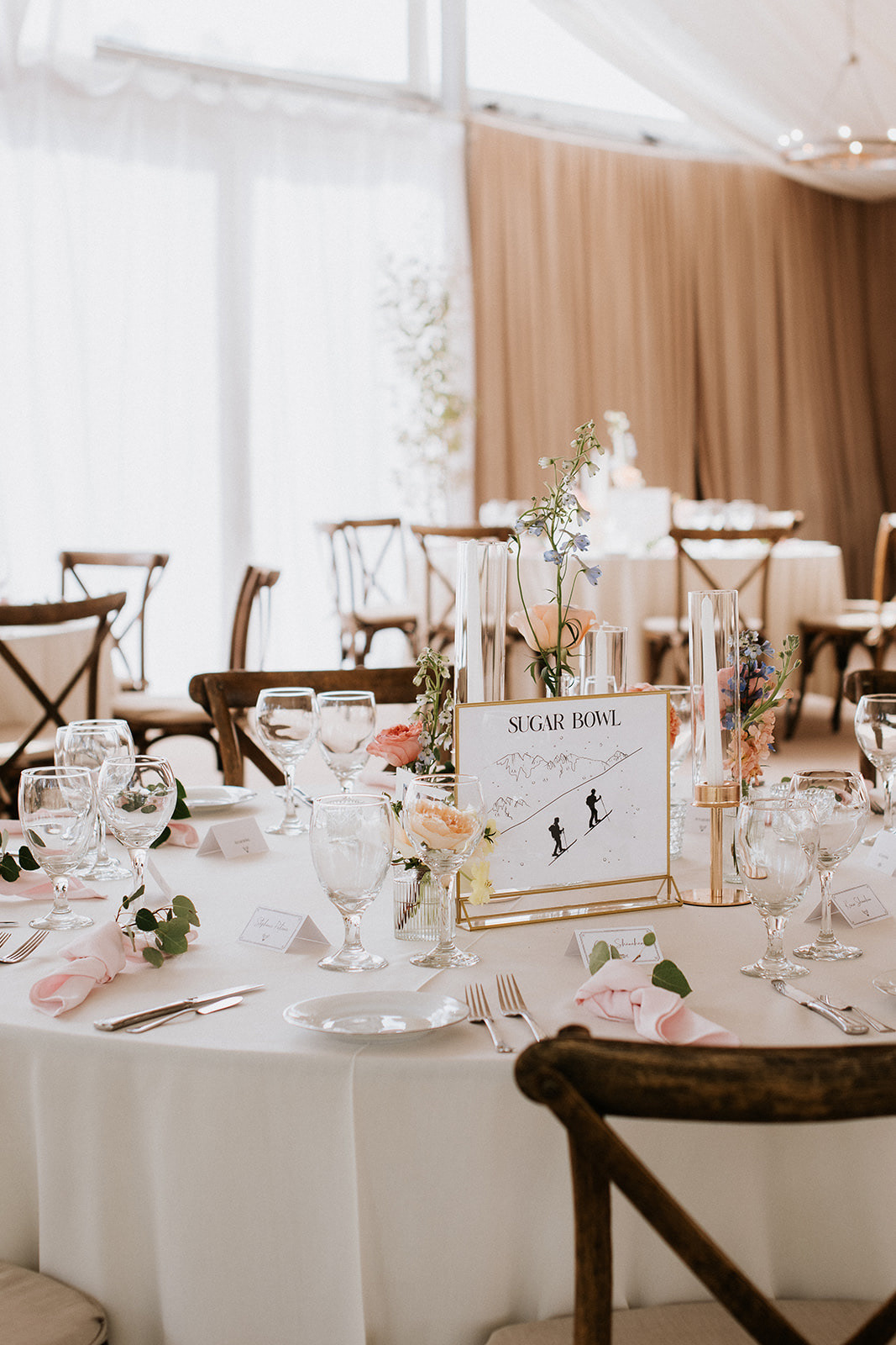 Finding a central theme can ensure cohesion throughout a wedding's aesthetic. This couple devotes all of their free time to Skiing and wanted aspects of their Secret Garden wedding location sprinkled throughout their designs. Combining their favorite things with a standard design was so fun, and turned out incredibly beautiful and special.